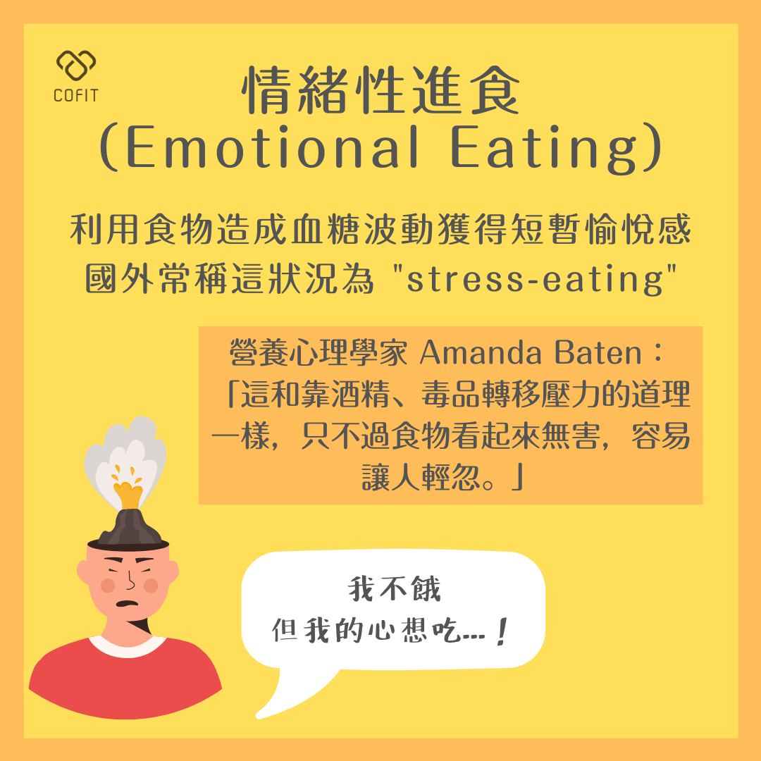 除了因為冰箱和零食就在附近,美國 飲食失調 治療師 Kimberly Hershenson 說:「疫情期間,大家會更常以吃來穩定焦慮情緒、排遣寂寞無聊,進食頻率及總量都增加,營養價值不高但熱量高的食物攝取也增加,這就是所謂的 情緒性進食(Emotional Eating)。」