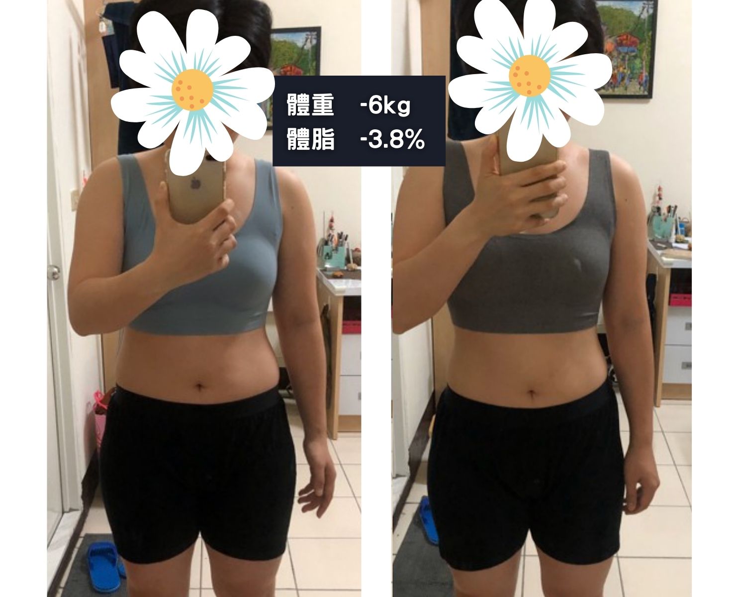 搭配營養師給予的運動建議,我在八週內成功瘦下六公斤,體脂也減少將近4%。除了成功瘦下來,也讓我真正學到知識—如何保持健康的飲食與運動習慣,將讓我受用一輩子!