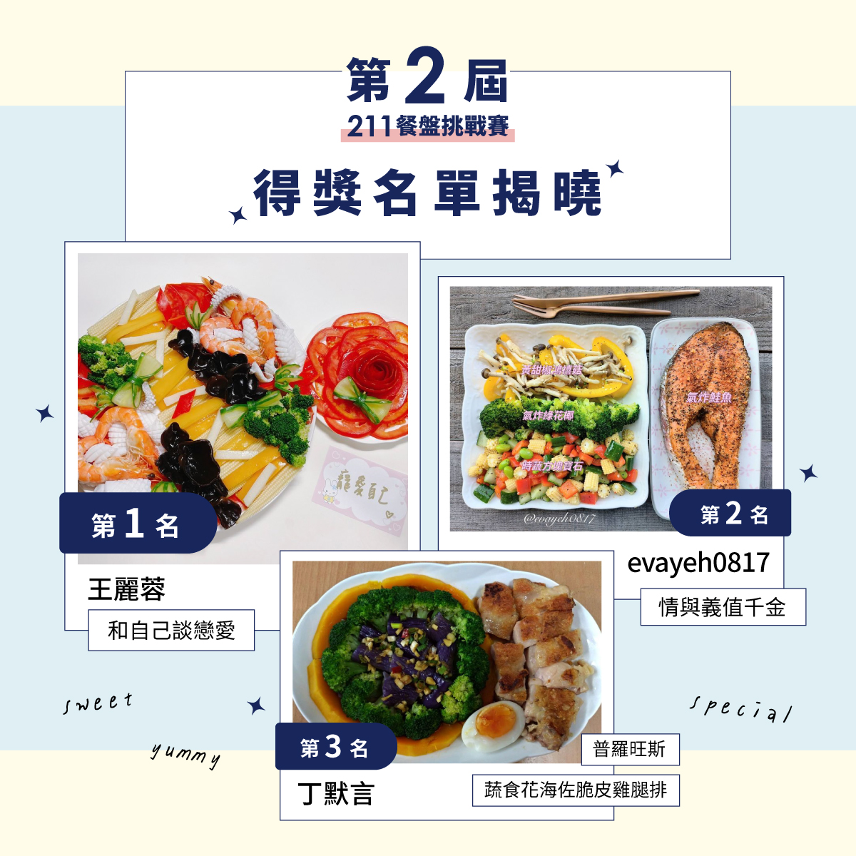 這回的餐盤都很優秀,宋醫師為鼓勵參與者,又額外加碼二名參者20%的分數,名次會因醫師加碼而拉高總分,在此特別說明。