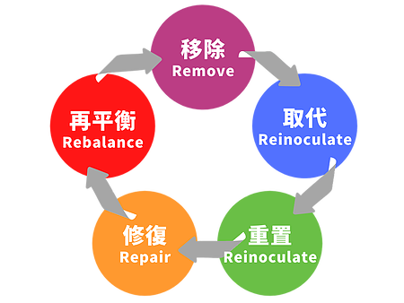 Reinoculate 重置:重置腸道菌叢生態,在飲食中多加入含有益生菌、益生質的食物