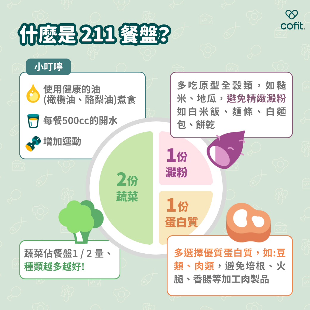 A:沒錯!只要沒有特別的疾病,即使是糖尿病,211餐盤都是一個相當健康的開始。唯有腎臟病、末期腎病的人要特別注意,因為此類患者對蛋白質與蔬菜裡鉀離子的耐受度比較不好,所以不適合執行211餐盤。