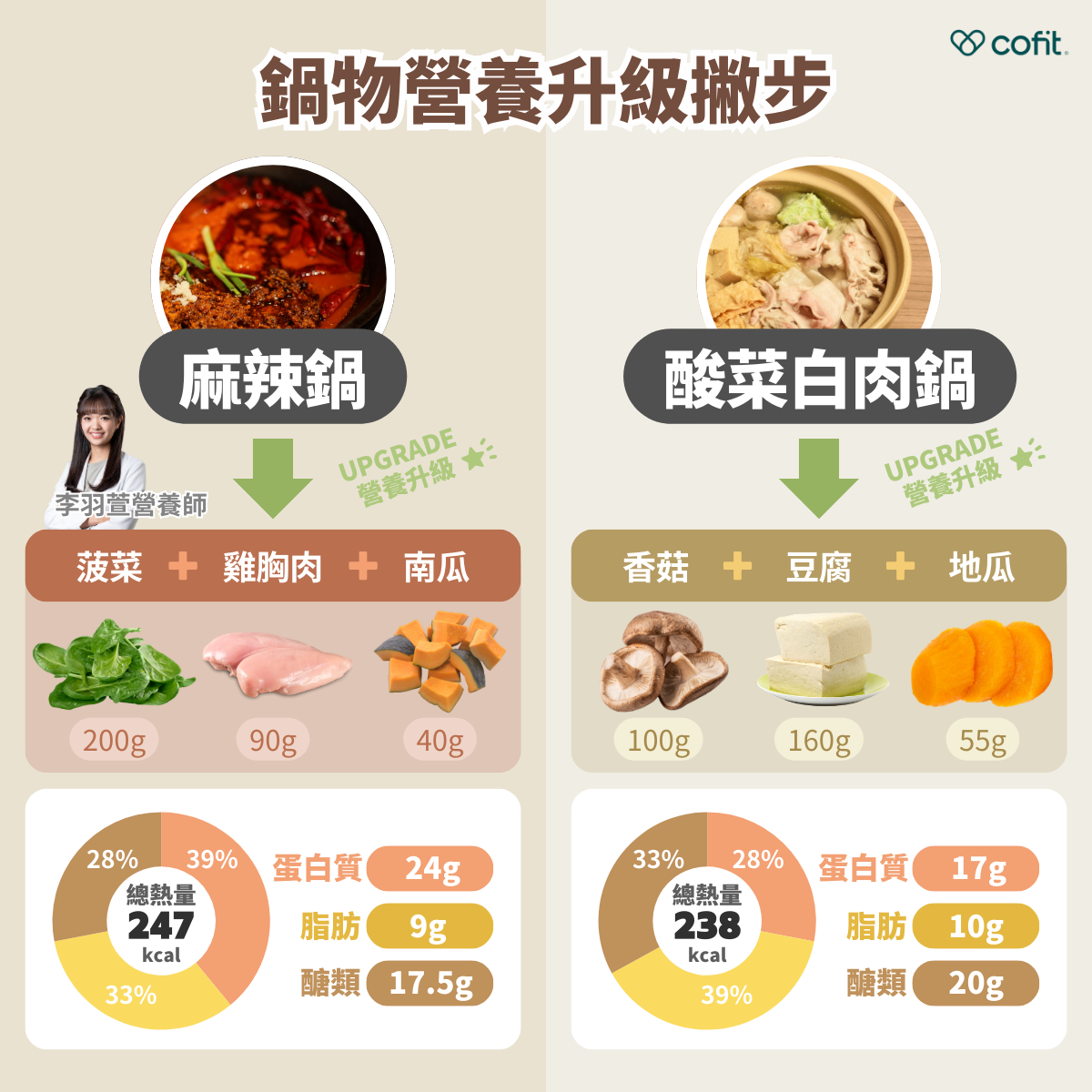 鈉與油脂含量高,建議選擇清湯與麻辣湯底混搭以減少腸胃刺激
