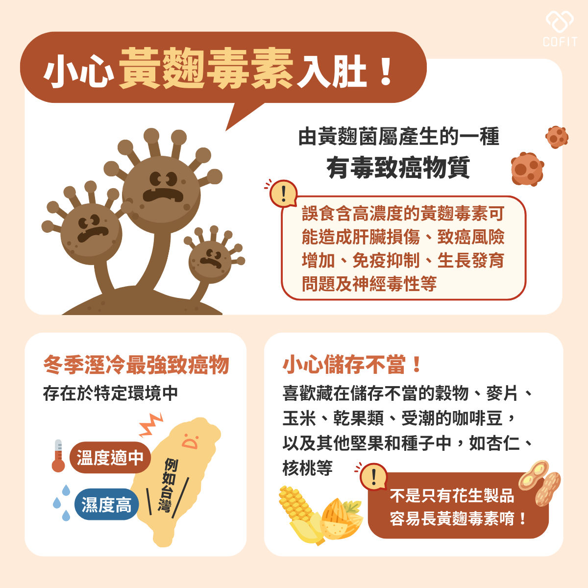 這些致癌物都有可能不小心被我們吃下肚,接下來要來特別聊聊『黃麴毒素』的危害,以及它可能存在的地方,還有我們可以怎麼預防。