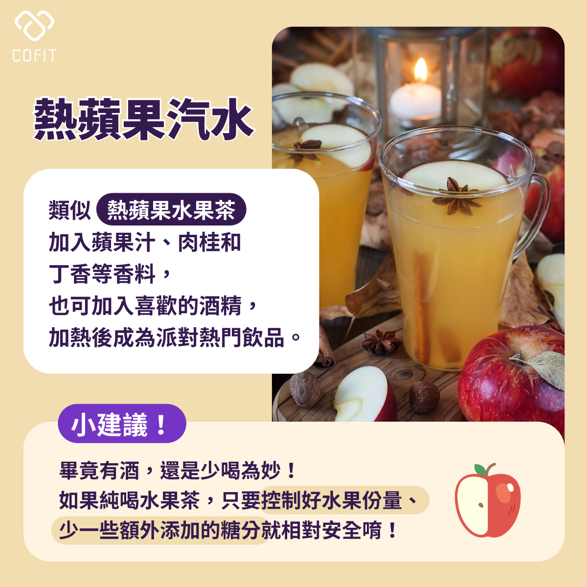 ,可以加上各種香料,並且熱熱的喝,像是加入蘋果汁、肉桂和丁香等等,暖暖地喝可以療癒身心。另外,也可加入喜歡的酒精,加熱後成為派對熱門飲品。但畢竟有酒,還是少喝為妙!如果純喝水果茶,只要