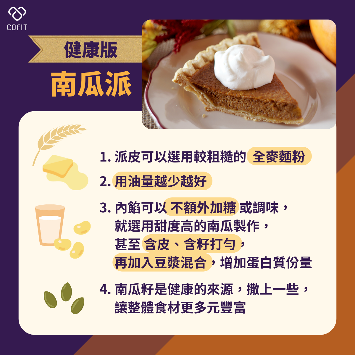 最後,營養師在這邊教大家將南瓜派替換成「健康南瓜派」的小訣竅!
