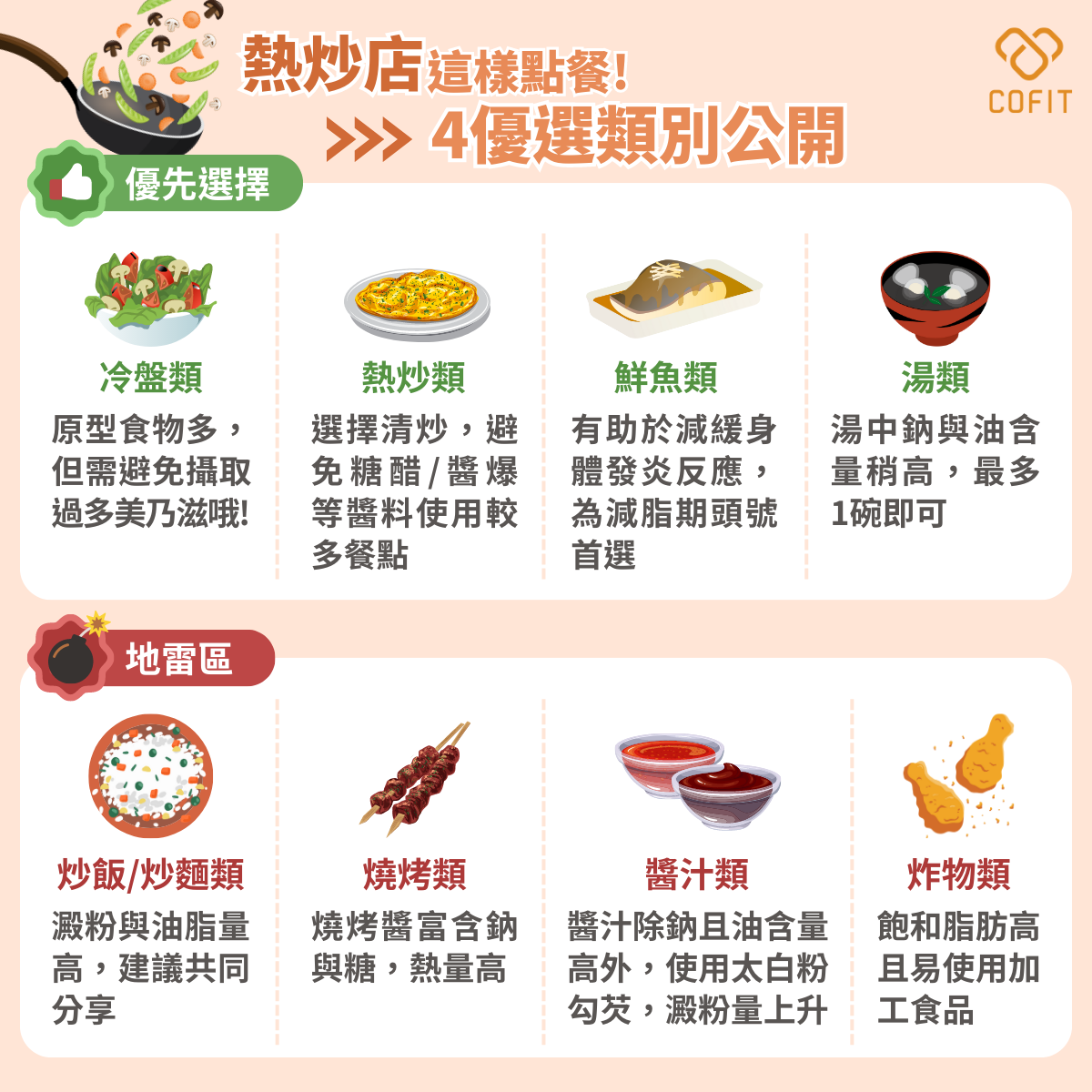 吃完外食常常覺得很撐嗎?有可能是油脂含量過高唷,食材與油脂經高溫加熱後,會生成梅納反應,使我們感受到香味,而油脂會延緩胃排空速度,讓我們較有飽足感,但油脂含量過高,熱量也相當可觀,因此減脂期應盡量避免炸物、蔥油餅、麻辣鍋等用油量較高的餐點。