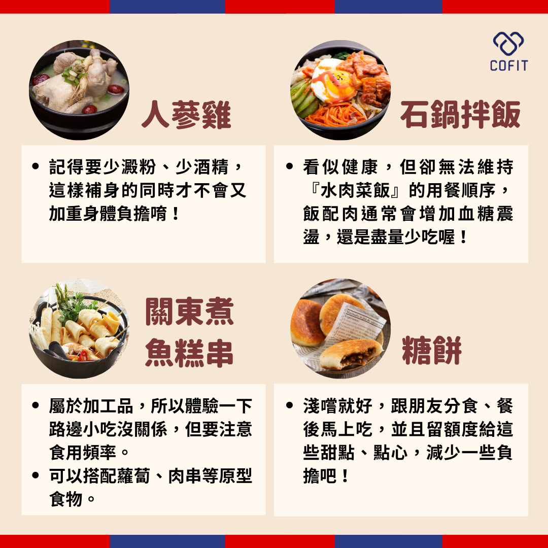 韓式料理的色香味,總會引人垂涎欲滴,但對於正在減重的你來說,這些可能都屬於紅燈食物哦!交給營養師來教你一些吃韓式料理的技巧吧,從此出國吃喝也不怕!