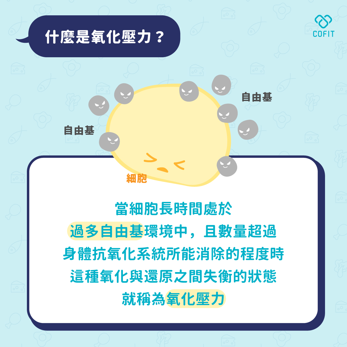 當細胞長時間處於過多自由基環境中,且數量超過身體抗氧化系統所能消除的程度時,這種氧化與還原之間如同天秤失衡的狀態,就稱為氧化壓力。