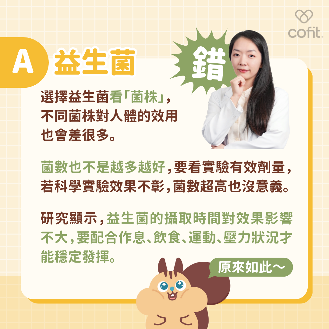 Q1:益生菌菌數越多、存活率越高,效果更顯著?