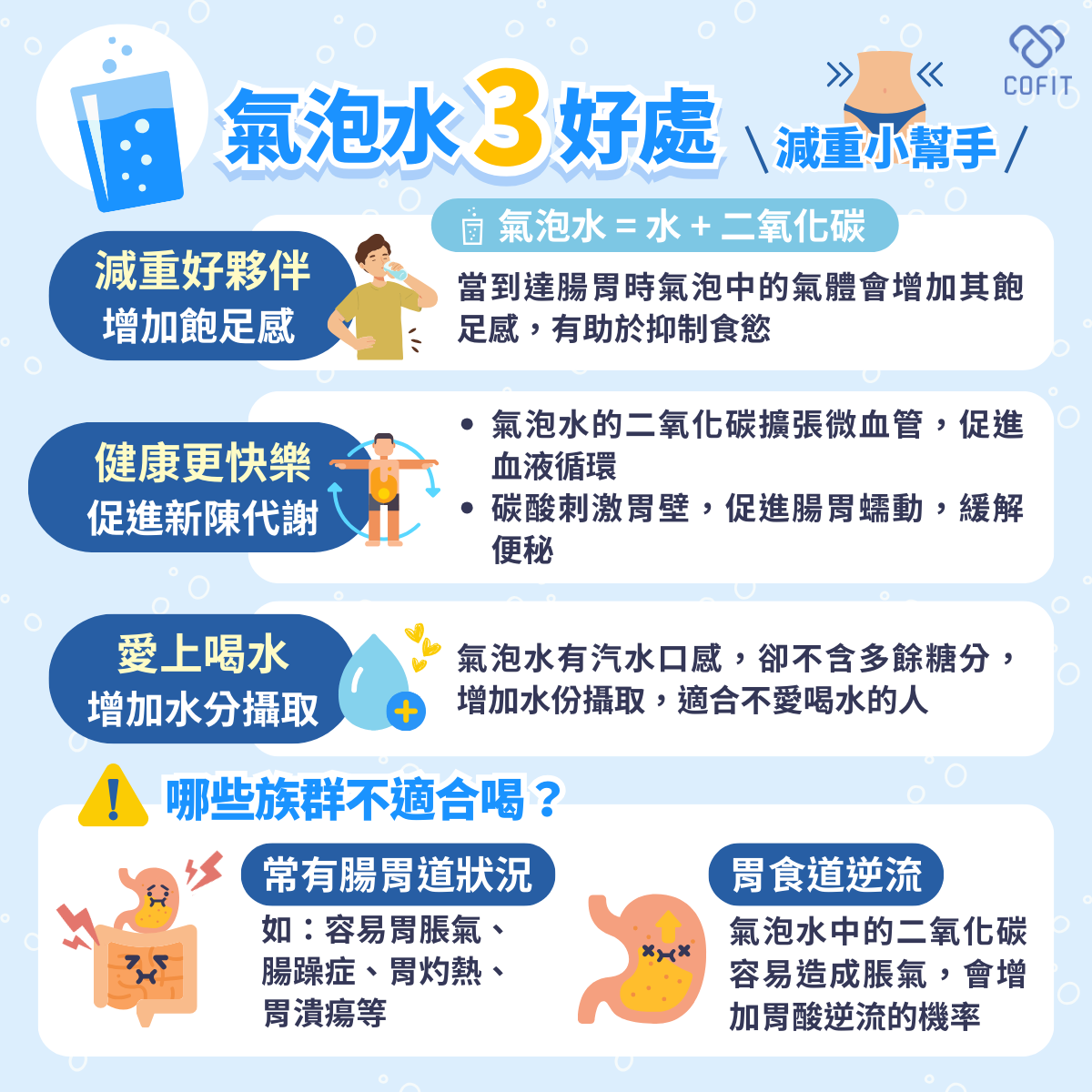 可以選擇有提供鈣、鎂、鐵、鉀等礦物質的氣泡水,藉以補充每天所需量,但需要注意的是有些氣泡水也會額外添加鈉,對於一些患有高血壓或腎臟疾病的患者需謹慎選擇。