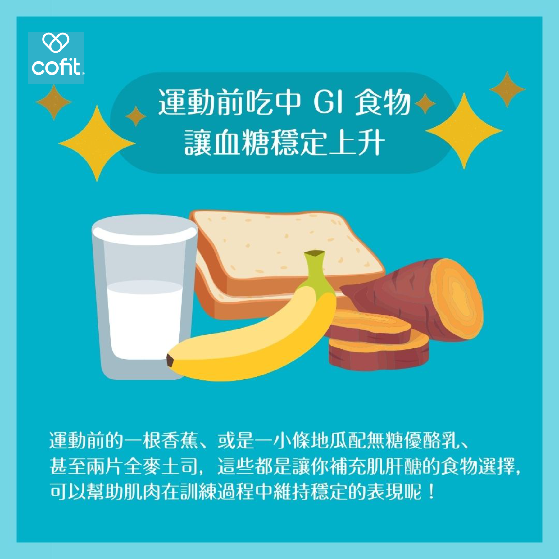 在運動之前,記得視自己的目標和運動來攝取適量、適合的食物,以免影響了訓練的成效喔!