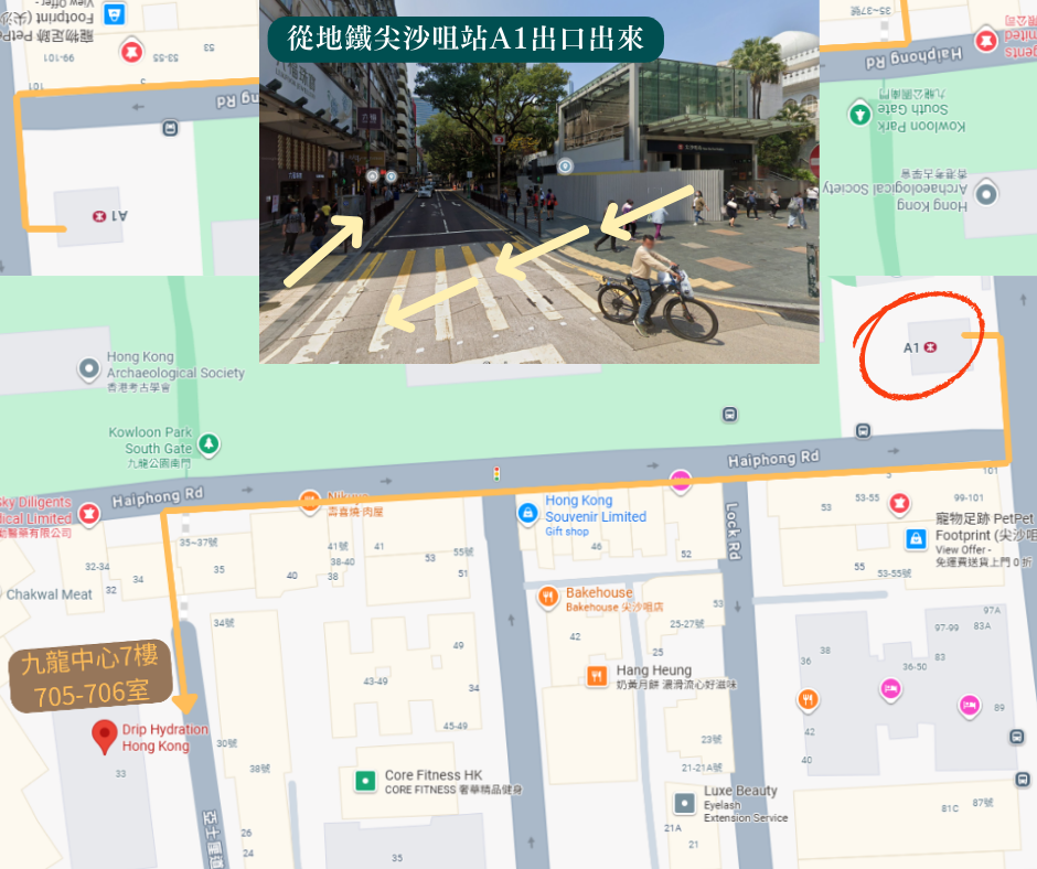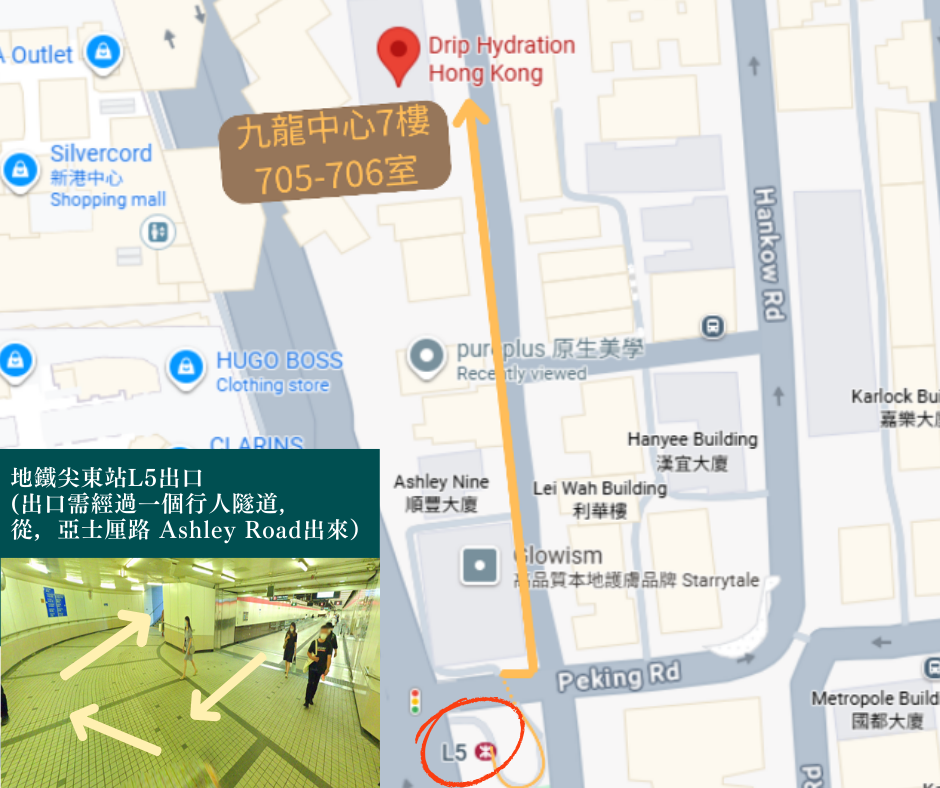 九龍尖沙咀亞士厘道33號九龍中心7樓705-6室 (香港尖沙咀,Drip Hydration點滴中心內)