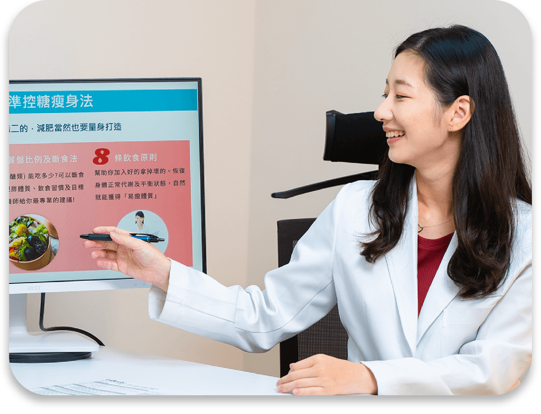 A:控糖減重門診是由專業醫生、營養師領銜組成的專業團隊,透過體重管理,飲食規劃、身體數據監控,給予個案適當的減重建議。從前期診斷、資訊了解個案情況,進入度身訂造飲食方案、提供藥物協助等科學手段來幫助前來求診的患者。