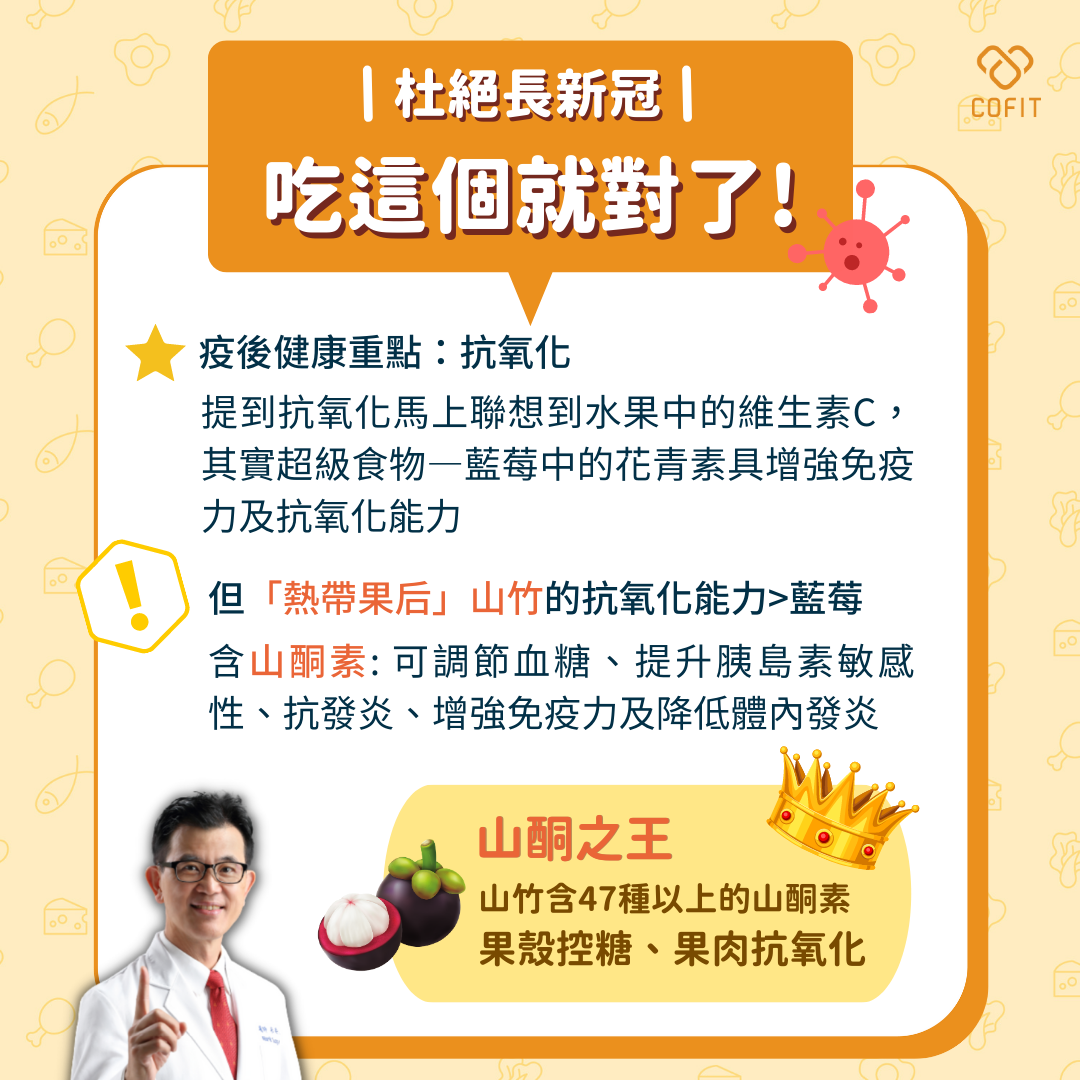 水果裡的維生素C,如柑橘類或藍莓。而有「水果之后」的山竹,抗氧化能力比藍莓還要高出許多倍!
