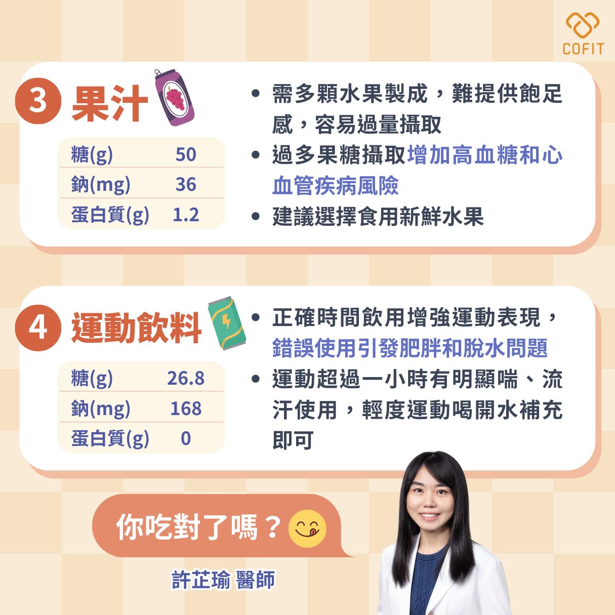 - 一杯果汁需多顆水果製成,難提供飽足感,容易過量攝取