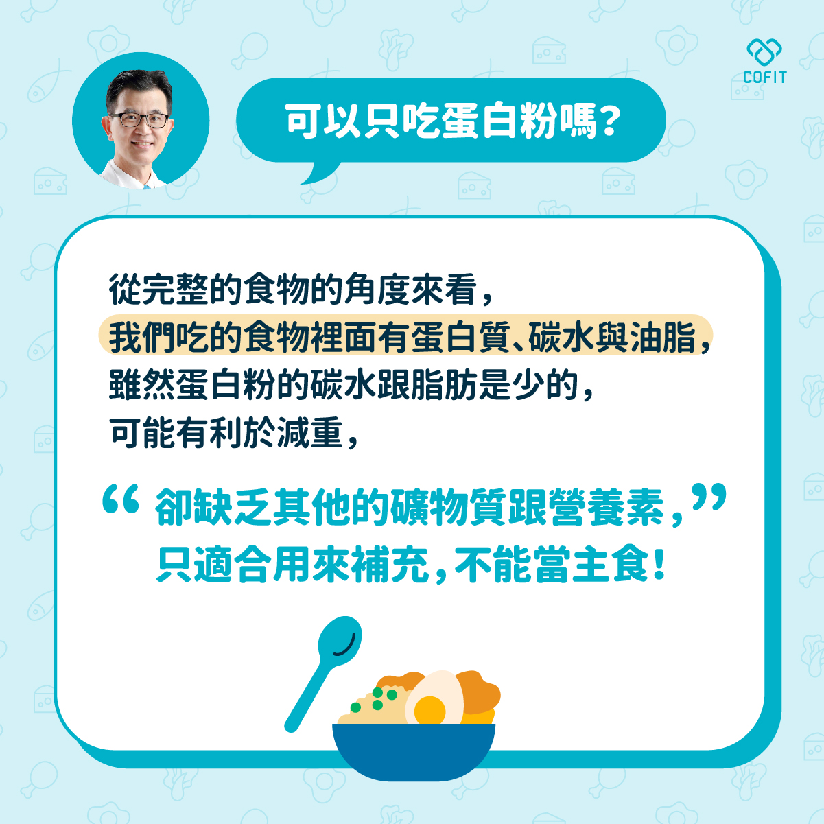 在我們日常飲食的原型食物中,蛋白質、碳水化合物和油脂是共同存在的。然而,若你選擇使用蛋白粉來取代飲食中的蛋白質,碳水化合物和脂肪的含量就相對較低了。這對於減重可能有所助益,但同時也意味著你會失去其他礦物質和營養素的攝取。從補充的角度來看,這是一個不錯的選擇,但若將其作為主食來使用,則可能會產生嚴重的不足。