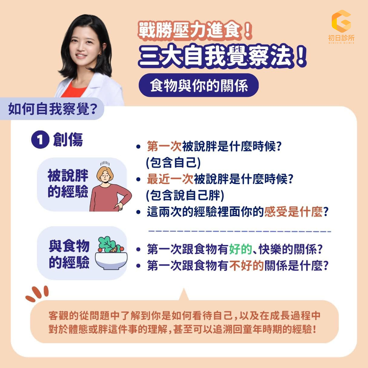 在這些情緒和壓力的背後很多時候牽涉到過去的成長經驗,潛意識的形塑了我們的進食行為,