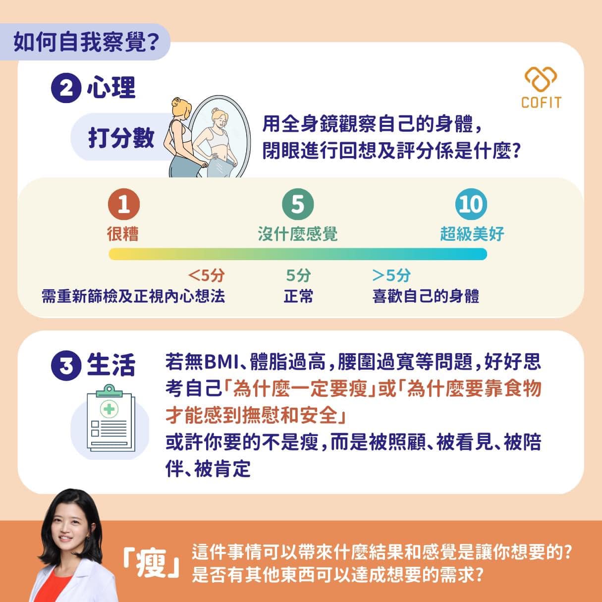 等等,先正視自己的心理狀態尋求協助,才不會落入瘦瘦胖胖又心裡鬱悶的惡性循環。