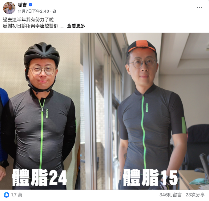 整套療程結束後,也讓我從最胖時的100kg➝70kg,體脂肪率從38%➝15%