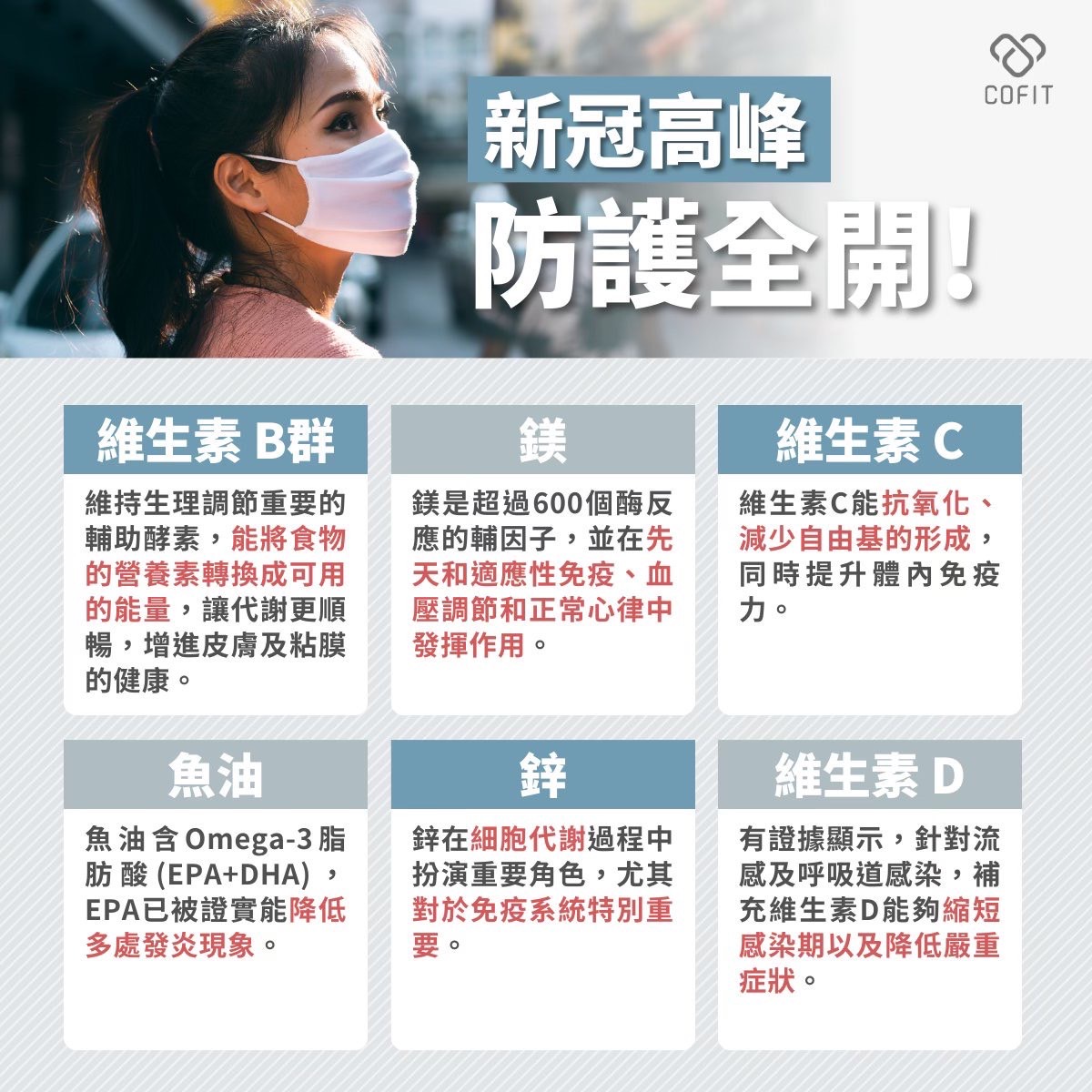 近來再度進入新冠肺炎Covid19 流行期,衛福部疾管署評估七月中旬開始將到達高峰。除了做好外部防護、勤洗手、積極佩戴口罩,從內部提升身體免疫力也非常重要。Cofit營養師表示,飲食與免疫力息息相關,尤其五種營養素更能幫助增強免疫力,讓人體盡可能遠離病毒流感危害。