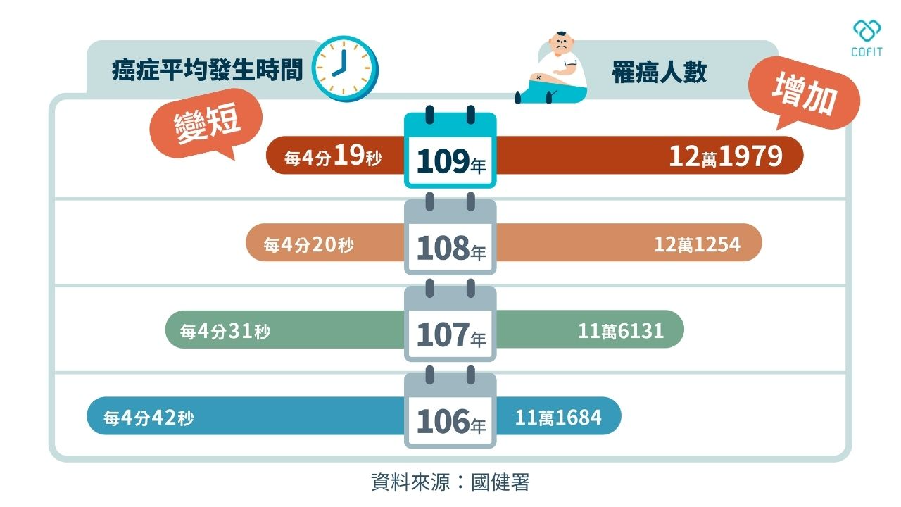 你知道2/4是什麼日子嗎? 國際癌症控制聯盟(UICC)為了讓大家認識癌症、鼓勵大家積極預防和治療在二月的第一周設立了世界癌症日。根據衛福部的統計,在過去的40年裡,癌症一直穩居台灣國民10大死因的第一名,109年就有50,161人死於癌症。平均每4分鐘19秒就會有一人罹癌!